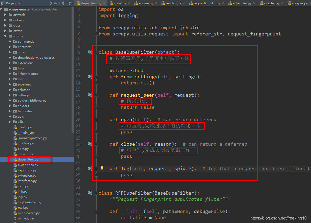 (scrapy/duperfilters.py)