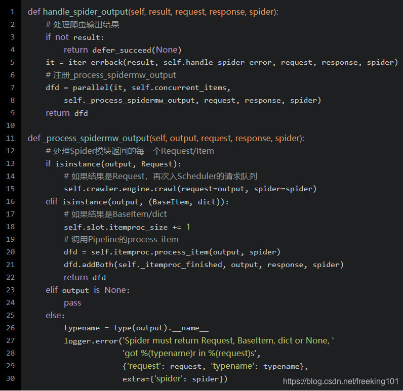 在与爬虫模块交互完成之后,Scraper调用了handle_spider_output方法处理输出结果: