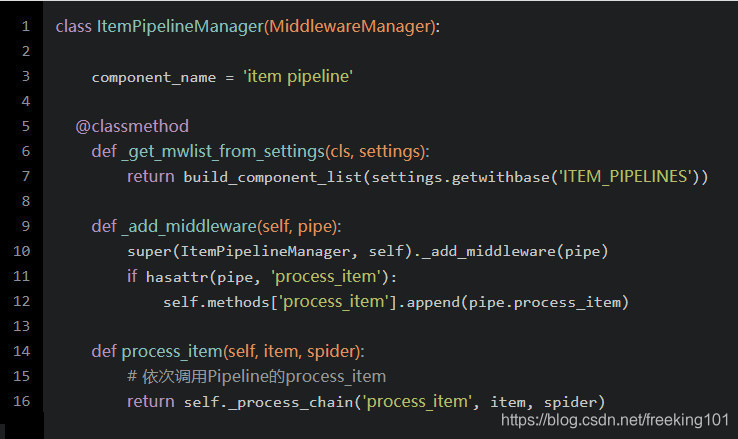可以看到ItemPipeManager也是一个中间件,和之前下载器中间件管理器和爬虫中间件管理器类似,如果子类有定义process_item,则依次执行它。