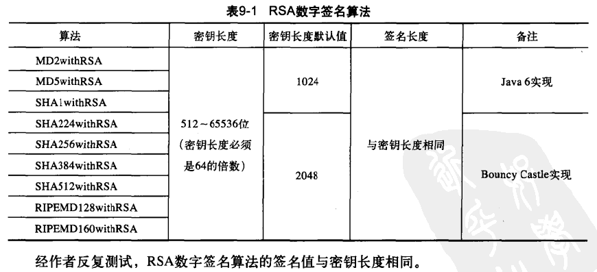 public abstract class RSACoder {/*** 数字签名* 密钥算法*/public static final String KEY_ALGORITHM = "RSA";/*** 数字签名* 签名/验证算法*/public static final String SIGNATURE_ALGORITHM = "SHA1withRSA";/*** 公钥*/private static final String PUBLIC_KEY = "RSAPublicKey";/*** 私钥*/private static final String PRIVATE_KEY = "RSAPrivateKey";/*** RSA密钥长度 默认1024位,* 密钥长度必须是64的倍数, * 范围在512至65536位之间。*/private static final int KEY_SIZE = 512;/*** 签名* * @param data* 待签名数据* @param privateKey* 私钥* @return byte[] 数字签名* @throws Exception*/public static byte[] sign(byte[] data, byte[] privateKey) throws Exception {// 转换私钥材料PKCS8EncodedKeySpec pkcs8KeySpec = new PKCS8EncodedKeySpec(privateKey);// 实例化密钥工厂KeyFactory keyFactory = KeyFactory.getInstance(KEY_ALGORITHM);// 取私钥匙对象PrivateKey priKey = keyFactory.generatePrivate(pkcs8KeySpec);// 实例化SignatureSignature signature = Signature.getInstance(SIGNATURE_ALGORITHM);// 初始化Signaturesignature.initSign(priKey);// 更新signature.update(data);// 签名return signature.sign();}/*** 校验* * @param data* 待校验数据* @param publicKey* 公钥* @param sign* 数字签名* * @return boolean 校验成功返回true 失败返回false* @throws Exception* */public static boolean verify(byte[] data, byte[] publicKey, byte[] sign)throws Exception {// 转换公钥材料X509EncodedKeySpec keySpec = new X509EncodedKeySpec(publicKey);// 实例化密钥工厂KeyFactory keyFactory = KeyFactory.getInstance(KEY_ALGORITHM);// 生成公钥PublicKey pubKey = keyFactory.generatePublic(keySpec);// 实例化SignatureSignature signature = Signature.getInstance(SIGNATURE_ALGORITHM);// 初始化Signaturesignature.initVerify(pubKey);// 更新signature.update(data);// 验证return signature.verify(sign);}/*** 取得私钥* * @param keyMap* @return* @throws Exception*/public static byte[] getPrivateKey(Map<String, Object> keyMap)throws Exception {Key key = (Key) keyMap.get(PRIVATE_KEY);return key.getEncoded();}/*** 取得公钥* * @param keyMap* @return* @throws Exception*/public static byte[] getPublicKey(Map<String, Object> keyMap)throws Exception {Key key = (Key) keyMap.get(PUBLIC_KEY);return key.getEncoded();}/*** 初始化密钥* * @return Map 密钥对儿 Map* @throws Exception*/public static Map<String, Object> initKey() throws Exception {// 实例化密钥对儿生成器KeyPairGenerator keyPairGen = KeyPairGenerator.getInstance(KEY_ALGORITHM);// 初始化密钥对儿生成器keyPairGen.initialize(KEY_SIZE);// 生成密钥对儿KeyPair keyPair = keyPairGen.generateKeyPair();// 公钥RSAPublicKey publicKey = (RSAPublicKey) keyPair.getPublic();// 私钥RSAPrivateKey privateKey = (RSAPrivateKey) keyPair.getPrivate();// 封装密钥Map<String, Object> keyMap = new HashMap<String, Object>(2);keyMap.put(PUBLIC_KEY, publicKey);keyMap.put(PRIVATE_KEY, privateKey);return keyMap;}