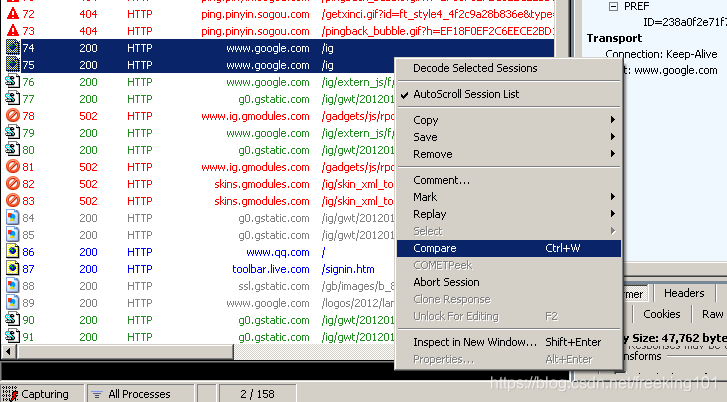 Fiddler 中会话比较功能