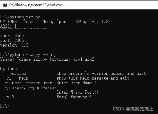 - 另一个是 optparse,它功能强大,而且易于使用,可以方便地生成标准的、符合Unix/Posix 规范的命令行说明。会自动帮你负责-h帮助选项。