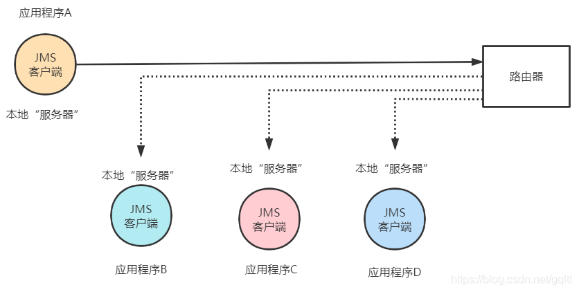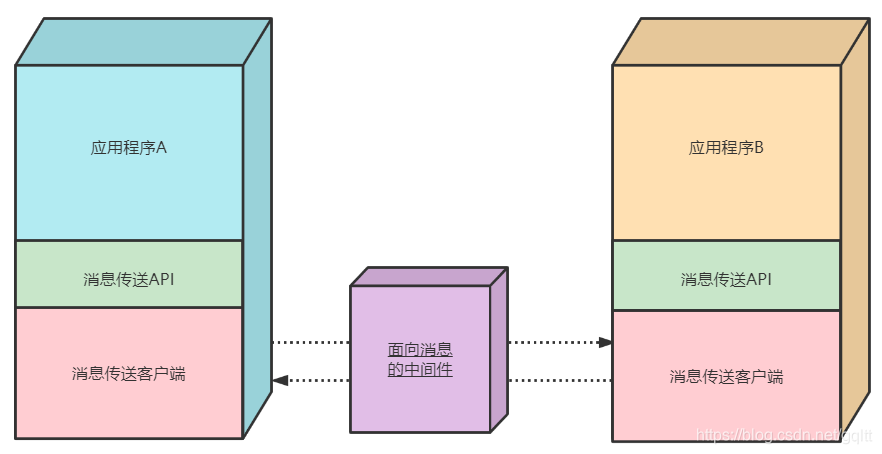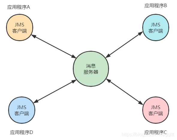 客户端:使用消息传送API 的一个业务应用程序或组件(如:JMS)