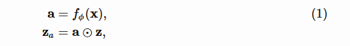 其中⊙是指元素对应乘法(element-wise multiplication)。下面我们可以谈论一下软注意力(soft attention),它将特征与一个值在0和1之间的掩码或当这些值被限定为0或1时的硬注意力(hard attention)相乘,即a∈{0,1}^k。在后一种情况下,我们可以使用硬注意力掩码直接索引特征向量:za =z[a](用Matlab表示法),可以改变其维度。