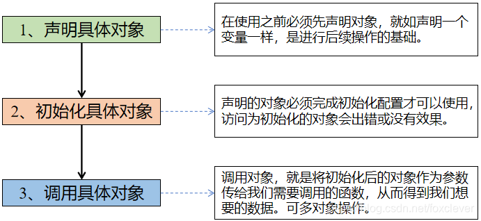 先说对象的声明,每类对象根据实际情况声明对象,名称无限制,只要符合变量的命名规则就好。