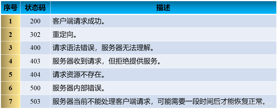 我们开发过程有一些状态码比较常见,我们对其简单说明如下: