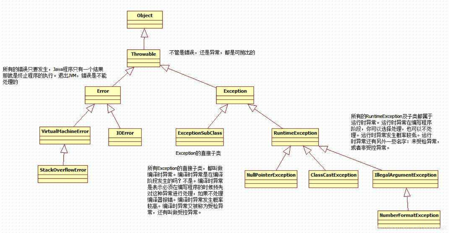 Exception的直接子类:编译时异常(要求程序员在编写程序阶段必须预先对异常进行处理,否则编译不通过)