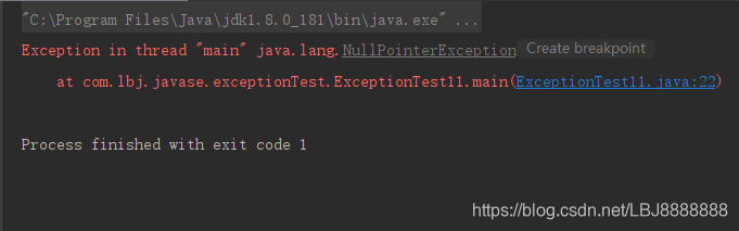 package com.lbj.javase.exceptionTest;public class ExceptionTest08 {public static void main(String[] args) {//这里只是为了测试getMassage()方法和printStackTrace()方法//这里只new了异常对象,但是没有将异常对象抛出。JVM会认为这是一个普通的java对象NullPointerException exception=new NullPointerException("空指针异常");//获取异常简单描述信息,这个信息实际上就是构造方法上面String参数String s=exception.getMessage();System.out.println(s);//打印异常堆栈信息,并不代表此时程序正在发生异常//java后台打印异常堆栈追踪信息的时候,采用了异步线程的方式打印exception.printStackTrace();System.out.println("hello");}