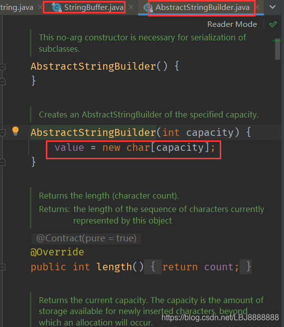 StirngBuffer是动态容量,你创建的初始空间是16个字符,后续如果超过此数据后,会创建一个更大的数组存储,那么之前存储的数据首先会拷贝进新的数组内,旧的数组会有垃圾回收机制回收