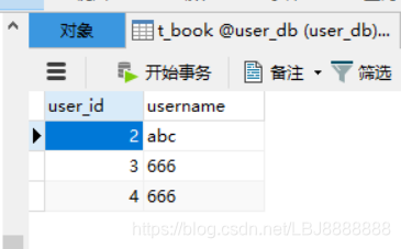 数据库中有3条记录,数据库名是user_db,数据库表是t_book