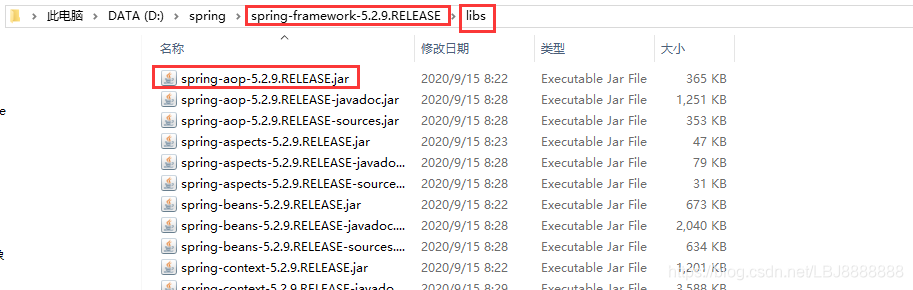 首先,找到依赖,在之前下载的Spring的jar包中找到aop jar包