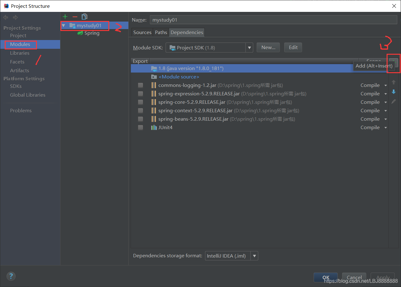 <bean id="dataSource" class="com.alibaba.druid.pool.DruidDataSource"><!--代表驱动名称--><property name="driverClassName" value="com.mysql.jdbc.Driver"></property><!--数据库的地址 jdbc:mysql://localhost:3306 名字 userDb--><property name="url" value="jdbc:mysql://localhost:3306/userDb"></property><!--登录用户名和密码--><property name="username" value="root"></property><property name="password" value="root"></property>