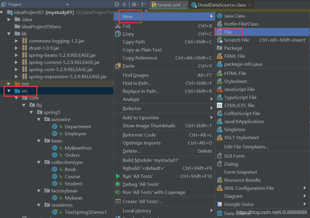 (1)创建外部属性文件 properties 格式的配置文件,写数据库信息