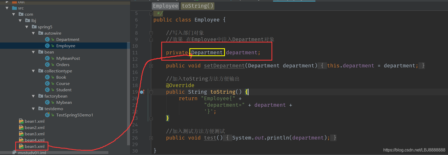 package com.lbj.spring5.testdemo;import com.lbj.spring5.autowire.Employee;