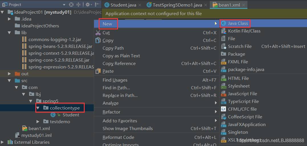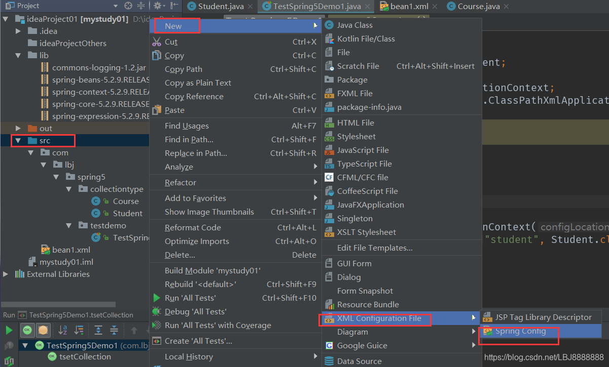 package com.lbj.spring5.testdemo;import com.lbj.spring5.collectiontype.Student;