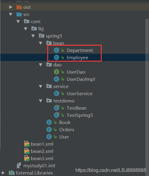 package com.lbj.spring5.testdemo;import com.lbj.spring5.bean.Employee;