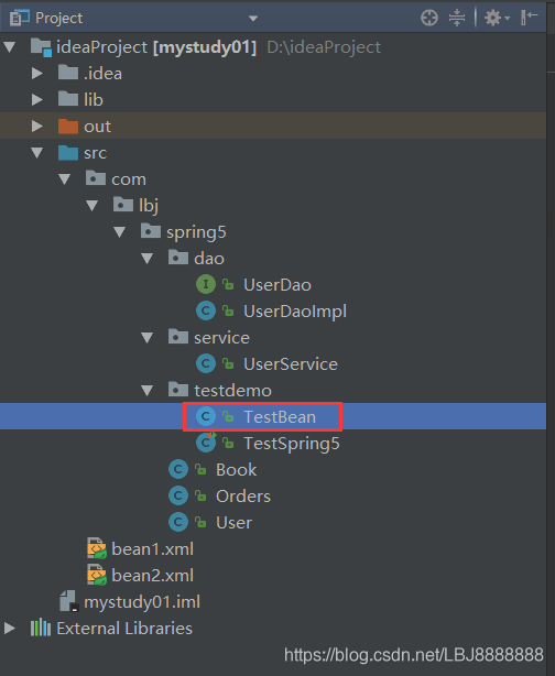 最后,为了方便测试,我们新建一个测试类 TestBean 类