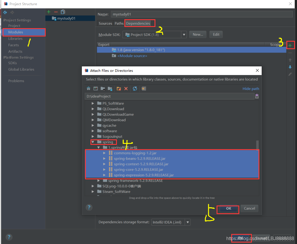 1.首先:打开 idea ,新建一个项目,将这个5个 jar 包都复制过来