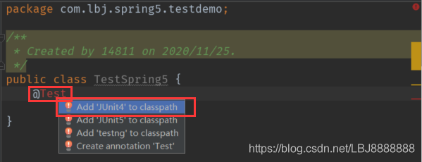 package com.lbj.spring5.testdemo;import org.junit.Test;public class TestSpring5 {@Testpublic void testAdd(){}