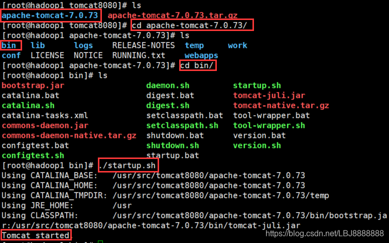 进到tomcat8080文件夹中解压apache-tomcat-7.0.73.tar.gz