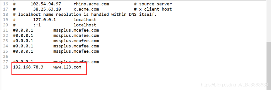 www.123.com先到 windows 的 host 文件中找到192.168.78.3 作为域名的映射地址