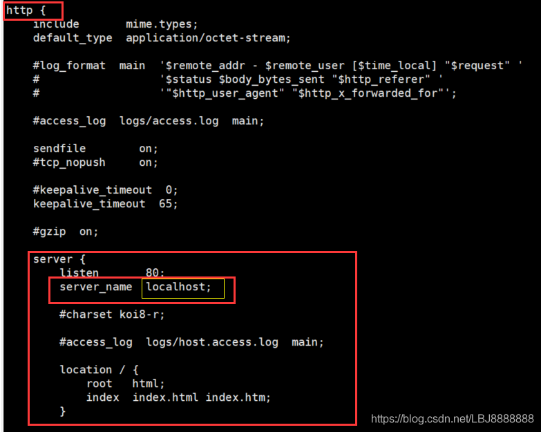 然后 nginx 中的配置文件中的 location 设置转发跳转到tomcat服务器127.0.0.1:8080