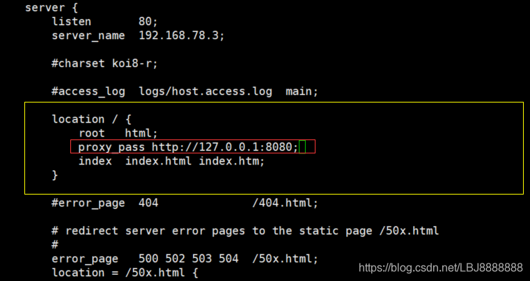 当访问 192.168.78.3的时候,location 会转发到一个 ip 地址,因此我们需要在 location 中加入转发路径
