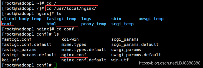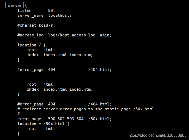 用vi nginx.conf打开配置文件(按j和k进行文档上下浏览移动)