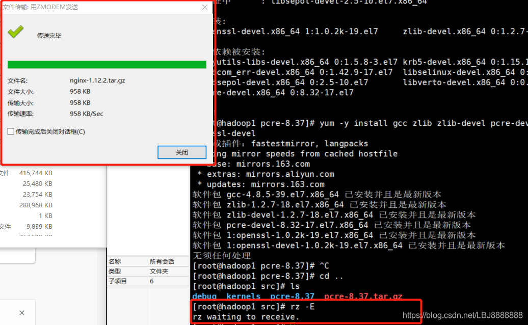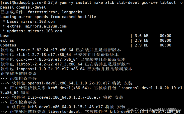 这时候我们完成Nginx的第一个依赖 pcre依赖包