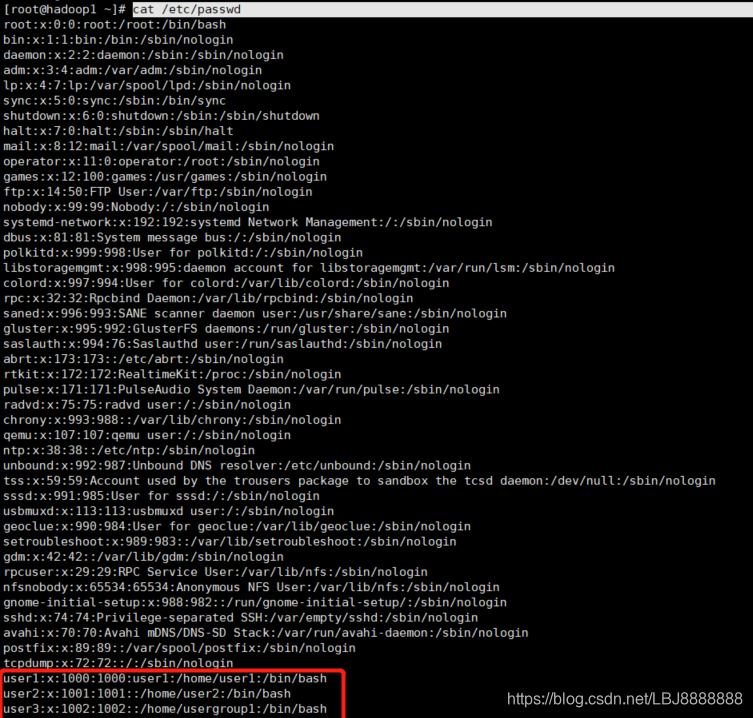3.cat /etc/group查看所有组信息
