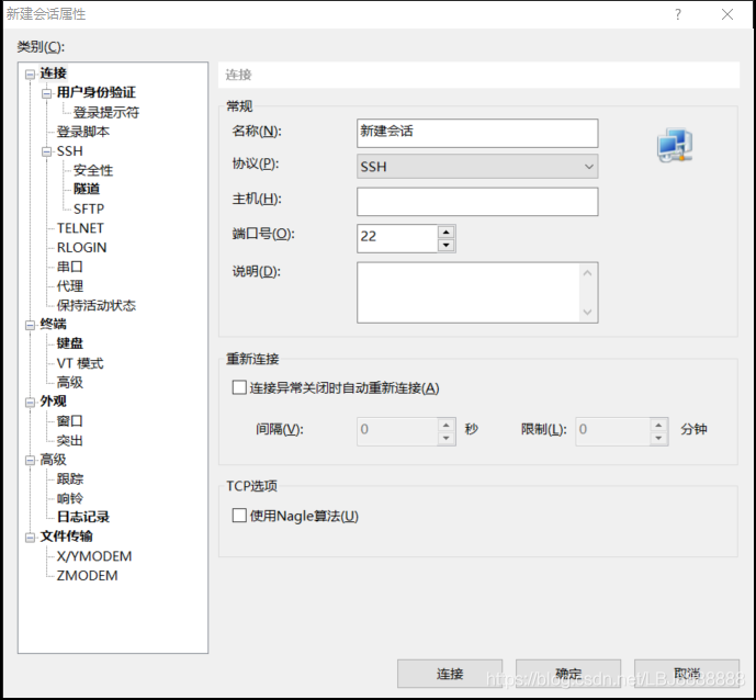 接下来我们再次打开Xshell,这次我们要做什么呢?当然是通过刚才找到的Linux服务器的IP放进Xshell的某一位置里进行配置,实现找到Linux服务器这个过程,注意端号和ip地址不要写错了