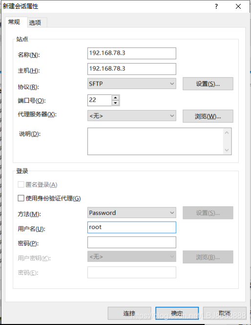 注意:一定是SFTP协议,因为这个协议对应的是22号端口(22号端口上面已经开启),用户名就是你在虚拟机的用户名,不要乱来