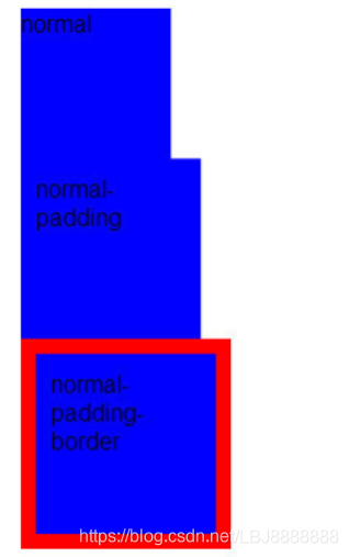 例如以下:第一个是什么也没有加的,第二个盒子是加了内边距,第三个盒子是加了边框,总结出来的规律就是DIV在普通属性下,是按照逆向思维执行,从内到外进行添加,这样往往会破坏实际的逻辑结构,因此我们需要引入一个属性来控制DIV,这个CSS属性是box-sizing: border-box;