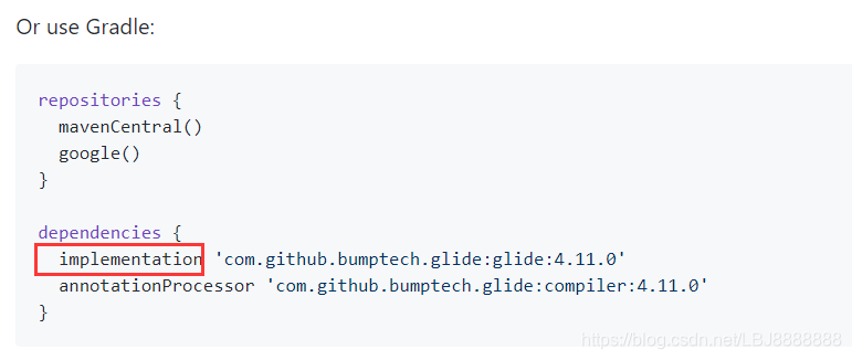 第六:官网提示时用这个implementation,但是低版本的还是继续用compile导入