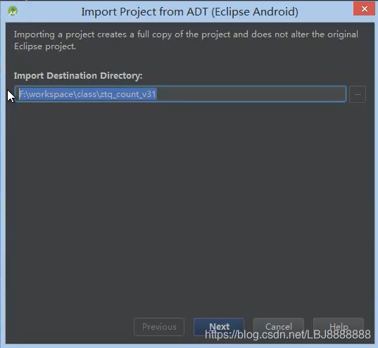 然后会让你选择把eclipse的项目导入到安卓开发的哪个文件夹内,这个你在自己的工作空间内建立一个文档即可