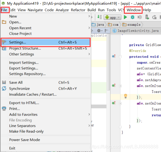 Android studio的设置是放在file菜单下,eclipse的设置是放在window菜单下