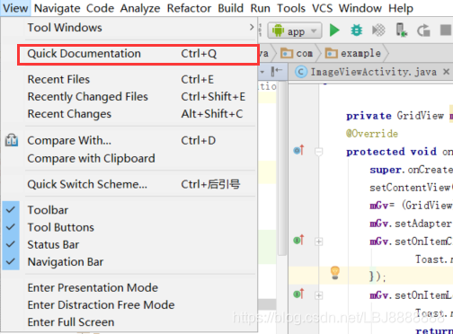这里鼠标移动到一些类库提供的方法的时候可以看ctrl+Q看一些API帮助文档
