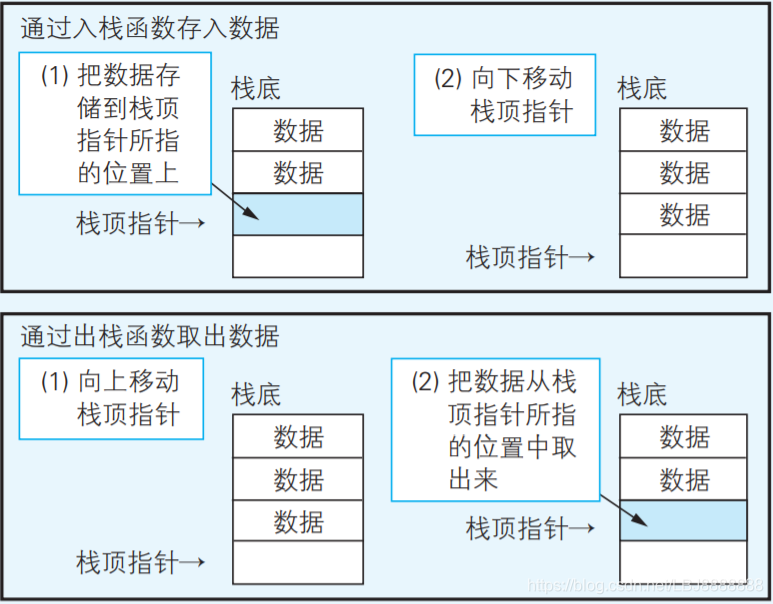 变量中则存储着一个索引,指向存储在栈中最顶端的数据,该变量被 称为“栈顶指针”。