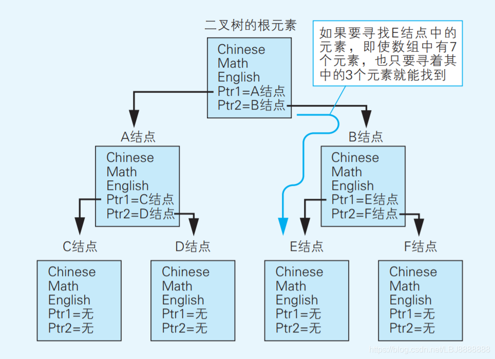 二叉树多用于实现那些用于搜索数据的算法,比如“二分查找法”。 比起只使用链表,使用二叉树能够更快地找到数据。因为搜索数据时 并不是像在简单数组中那样沿一条线搜索,而是寻着二叉树不断生长 出来的两根树杈中的某一枝搜索,这样就能更快地找到目标数据了