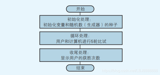 用户是怎样使用程序的呢?首先,用户启动了程序(程序 执行初始化处理)。接下来用户根据自己的需求操作程序(程序进入循 环处理阶段)。最后用户关闭了程序(程序执行收尾处理)。这样的使用 方法就可以直接作为程序的整体流程。