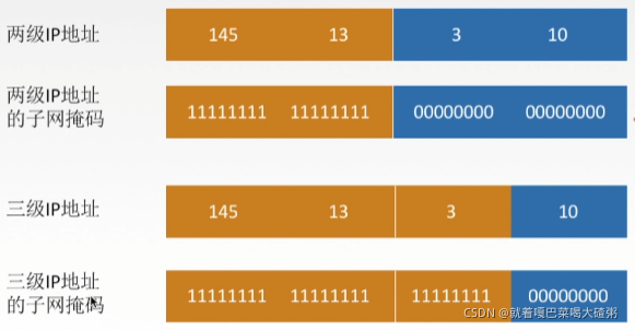 子网掩码就是网络号都是1,主机号都是0,子网掩码与IP地址逐位相与,就得到子网网络地址。