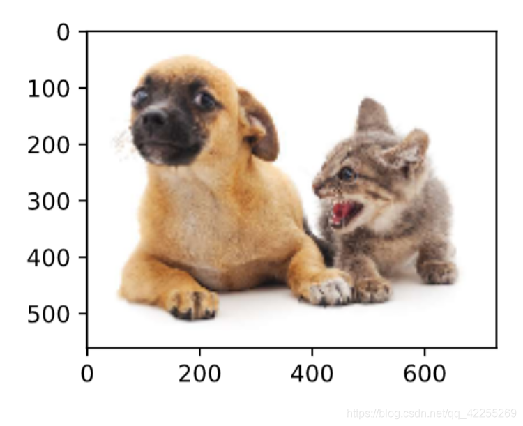 下面加载本节将使用的示例图像。可以看到图像左边是一只狗,右边是一只猫。它们是这张图像里的两个主要目标。