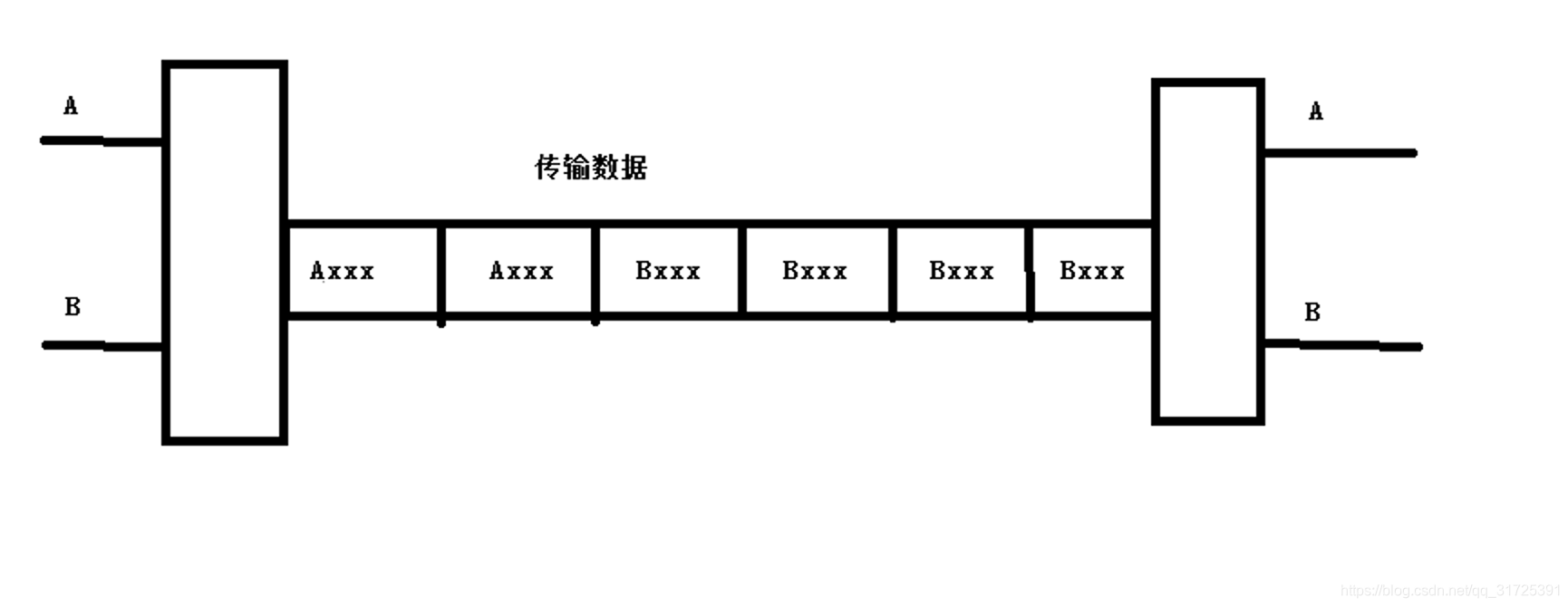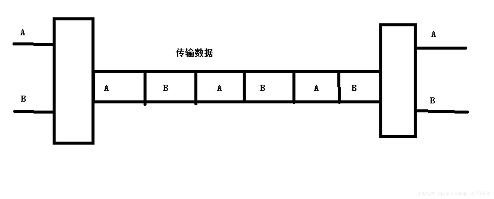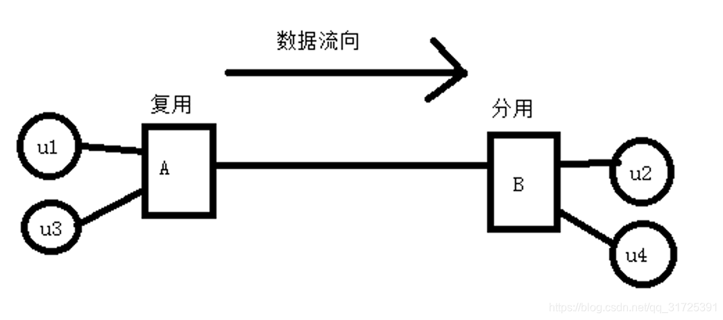 其中u1 u2是两个用户, 如果这两个用户之间连通的信道在他们使用过程中, 被他们完全占用了, 其他人就只能等着了. 那有人说了, 那就多架设信道不就好了. 如果说 A B之间的信道可以满足20G 流量的传输, 而u1 u2 在通信的过程中, 只使用了其中的千分之一, 这就造成了资源的极度浪费, 不管从哪方面考虑, 都应该充分利用其传输的性能.