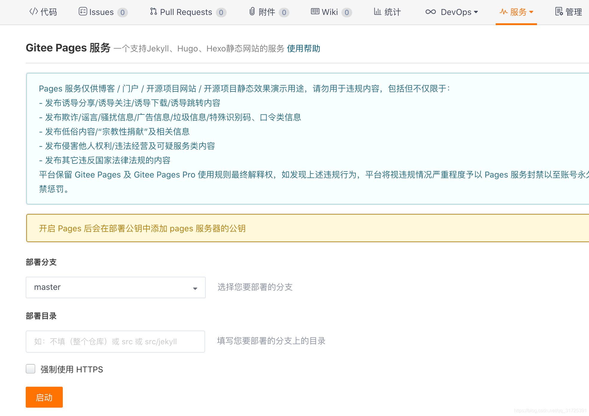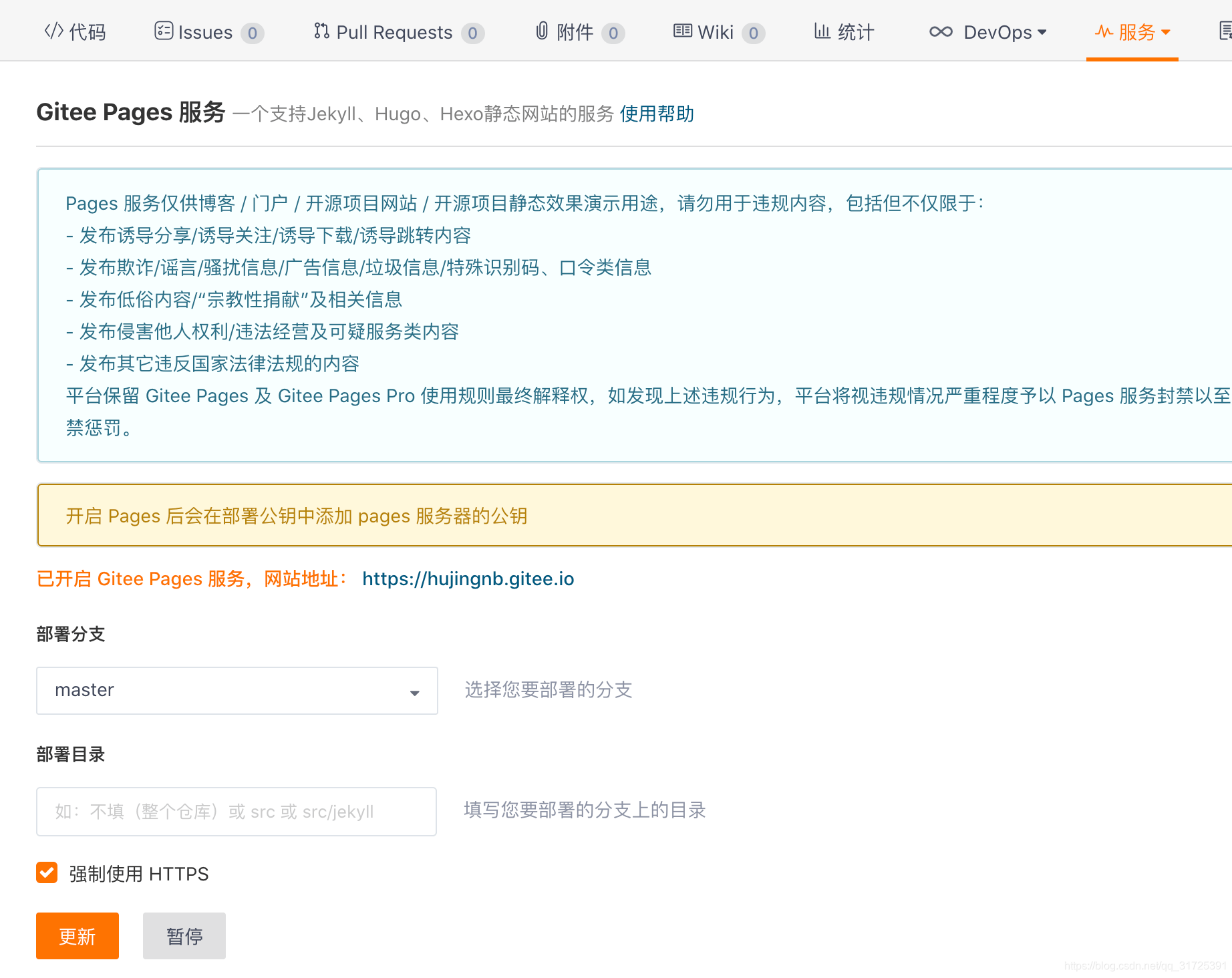 还记得我们最开始创建 pages 页面的步骤么? 一毛一样, 创建项目, 将本地项目上传, 不过在创建 Pages 的时候, 部署目录要选择我们刚刚生成的静态文件目录: public. 当然, 还有一个方式, 那就是只上传public目录下的内容, 毕竟展示只需要最终的静态文件即可了.