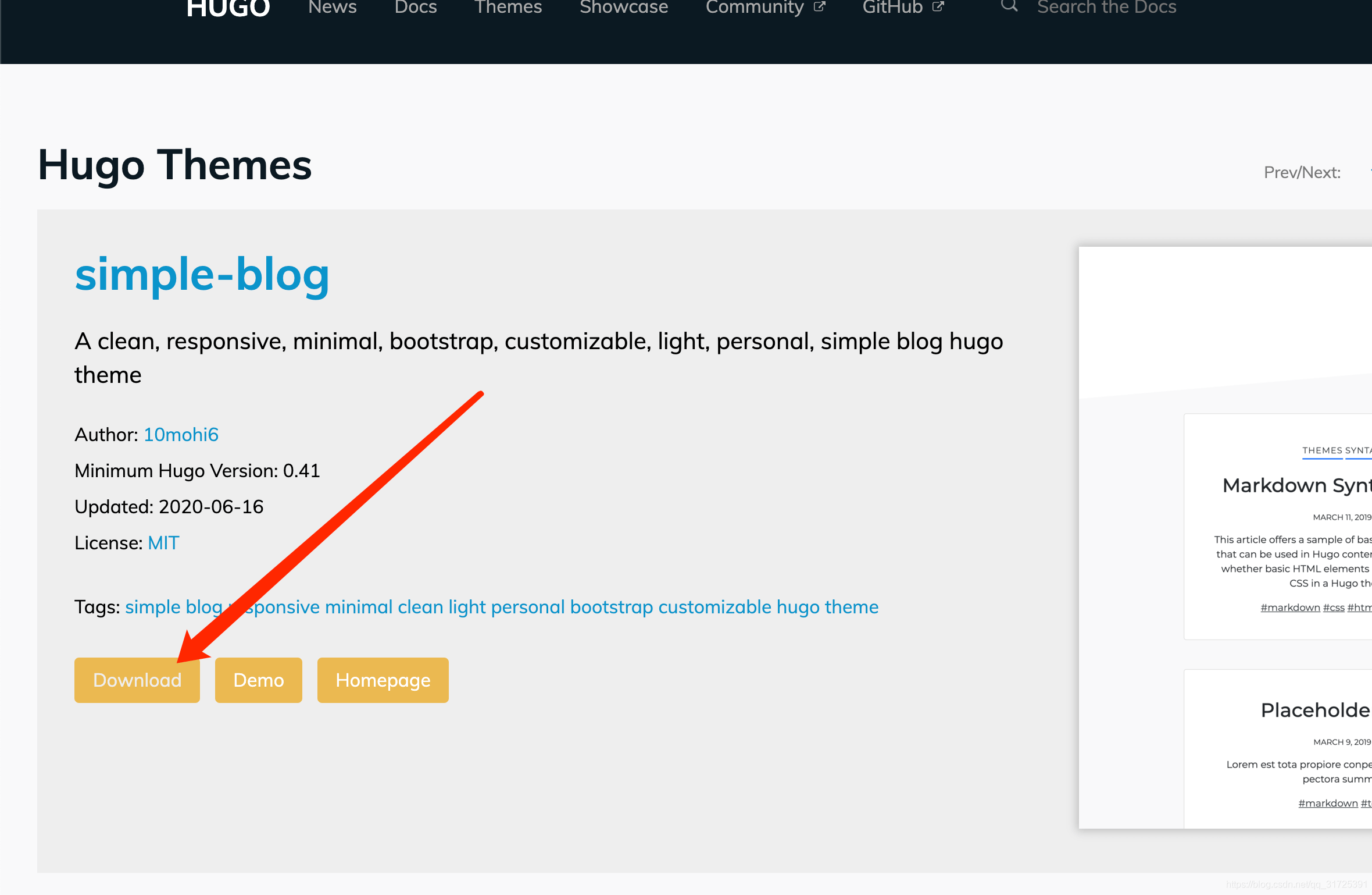 按照他的提示, 到 https://themes.gohugo.io/ 去下载一个主题.看了一下, 有很多大佬写的漂亮的主题可选, 正是我这种前端渣渣的福利. 找到你喜欢的主题: