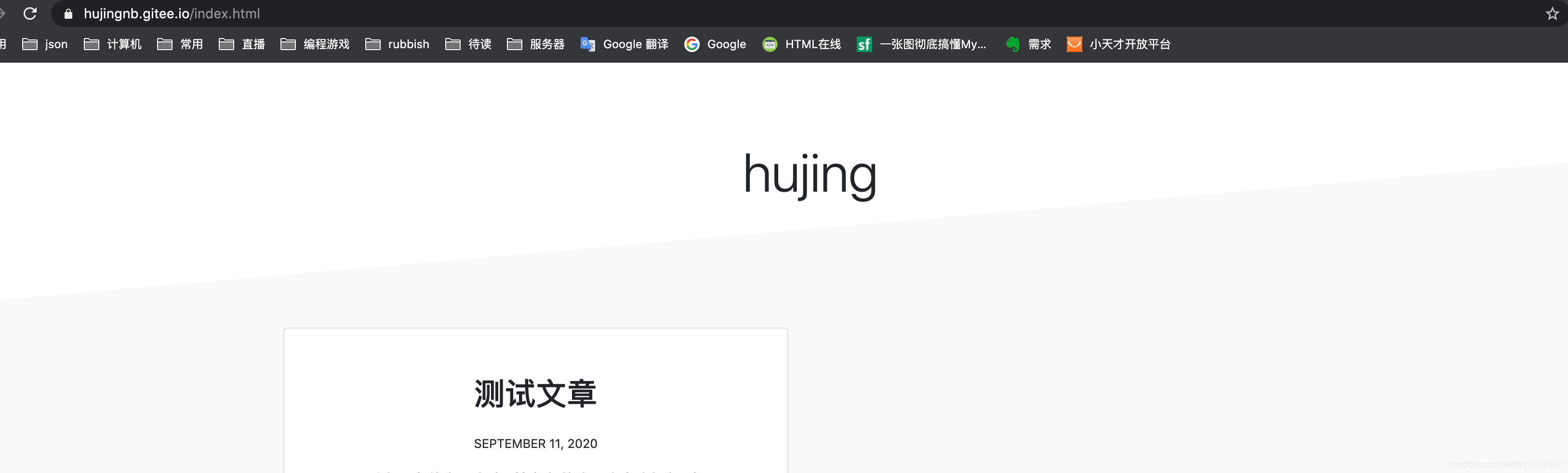 至此, 已经实现将静态页面进行展示了. 那么问题来了, 如果是想用作博客的话, 以现在这个结构来说, 就需要每次通过 git 将文章上传, 同时还要在index.html维护一个所有文章的列表. git 上传文章还好, 每次上传新的文章都要同步维护一个汇总列表, 这有点难受.