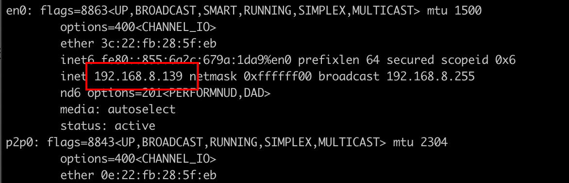 最先想到的方案, 就是将127.0.0.1更换成宿主主机的 IP. mac 下执行 ifconfig, 可以找到本机的 IP 地址. 将地址更换之后, 就可以了. 但是如果是移动网络等, IP 经常换的话, 就很难受了.