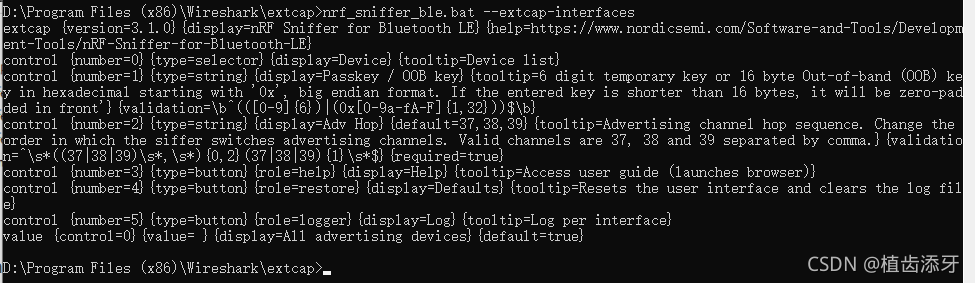 $ nrf_sniffer_ble.bat --extcap-interfaces