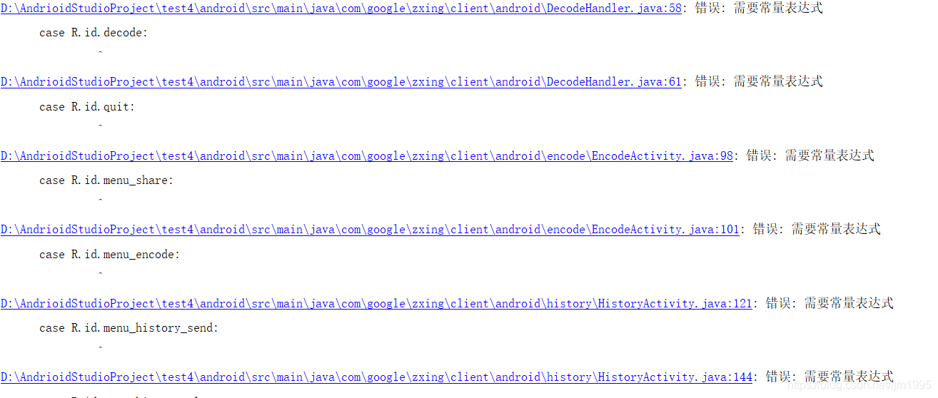 打开看之后,发现是所有switch-case出错了,查找资料发现,改成if-else格式就可以了。接下来就是改了,按照提示,找到对应的文件下面,把所有报错的地方的switch-case改成if-else。