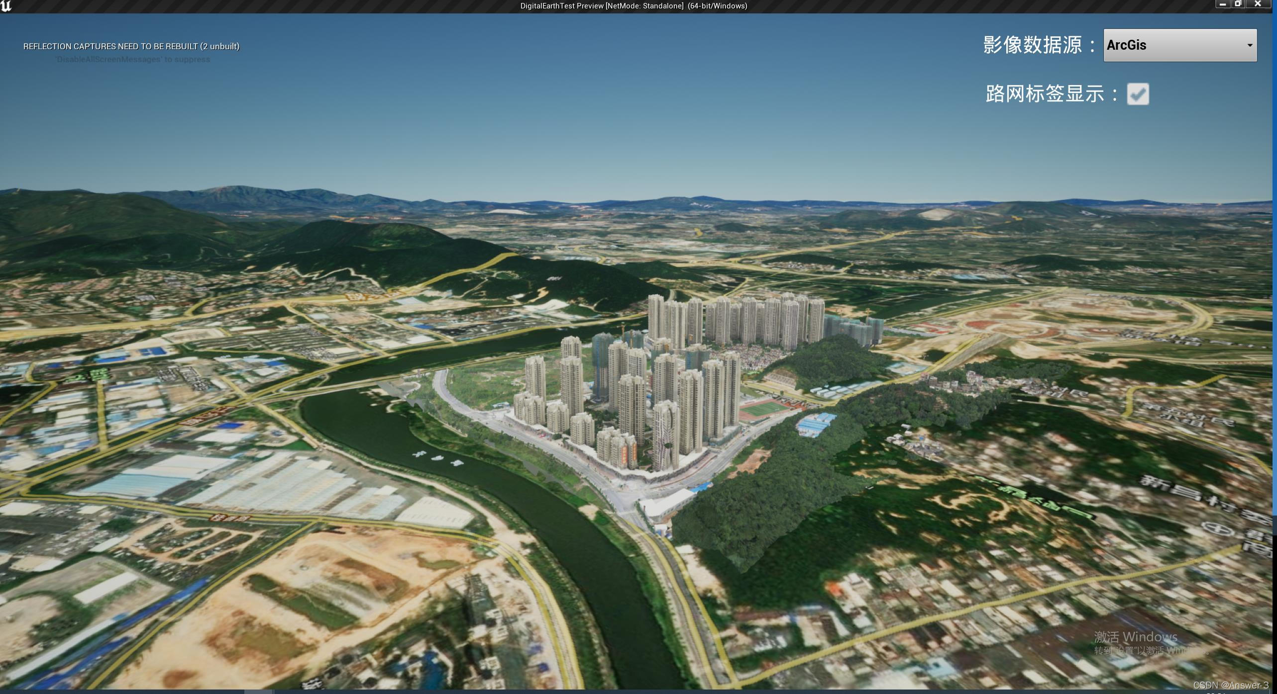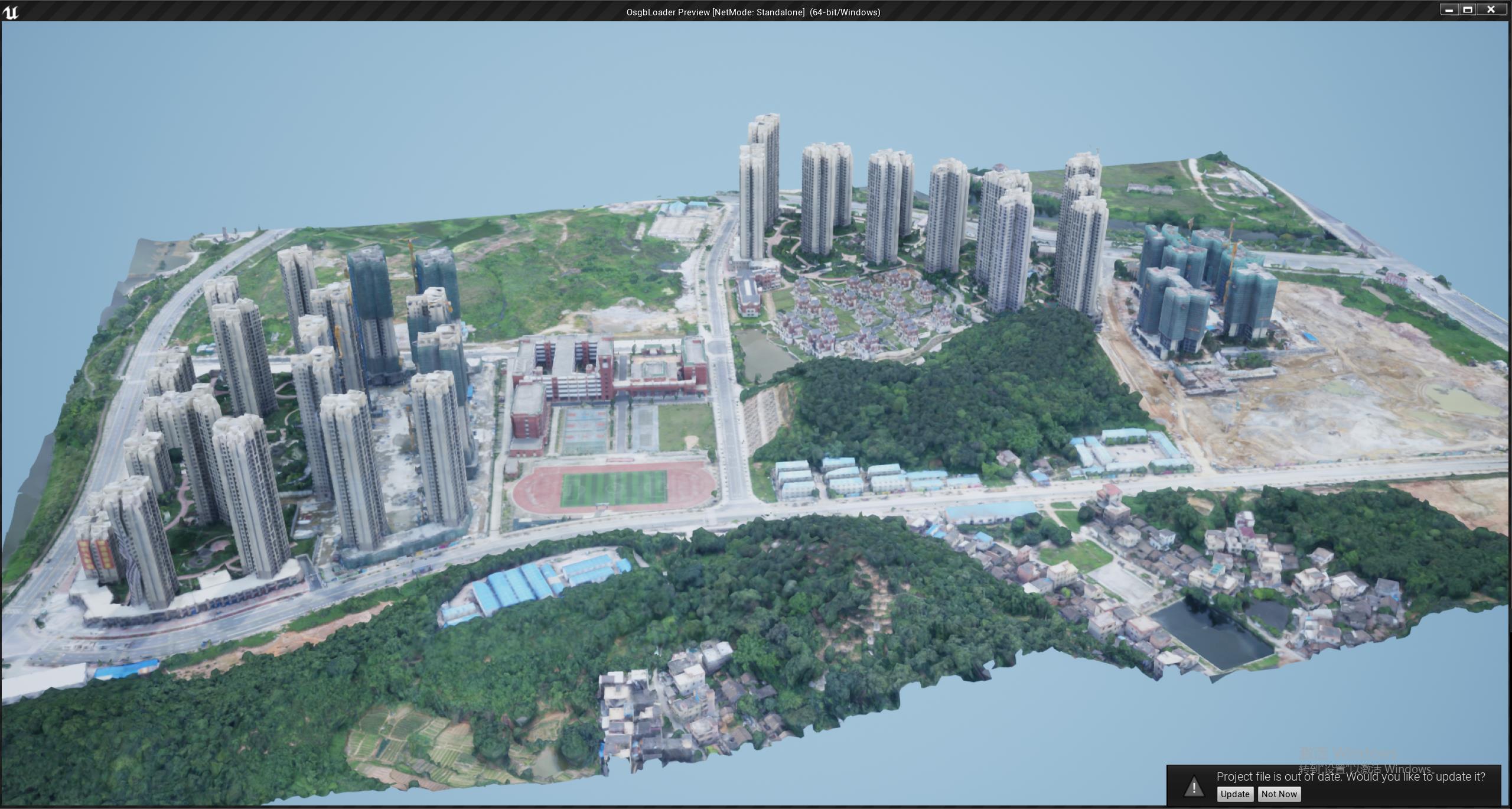 在UE4引擎中动态加载调度osgb倾斜摄影数据,利用多线程动态加载瓦片数据,可以顺畅加载海量的瓦片数据。最大可加载200G以上数量级。